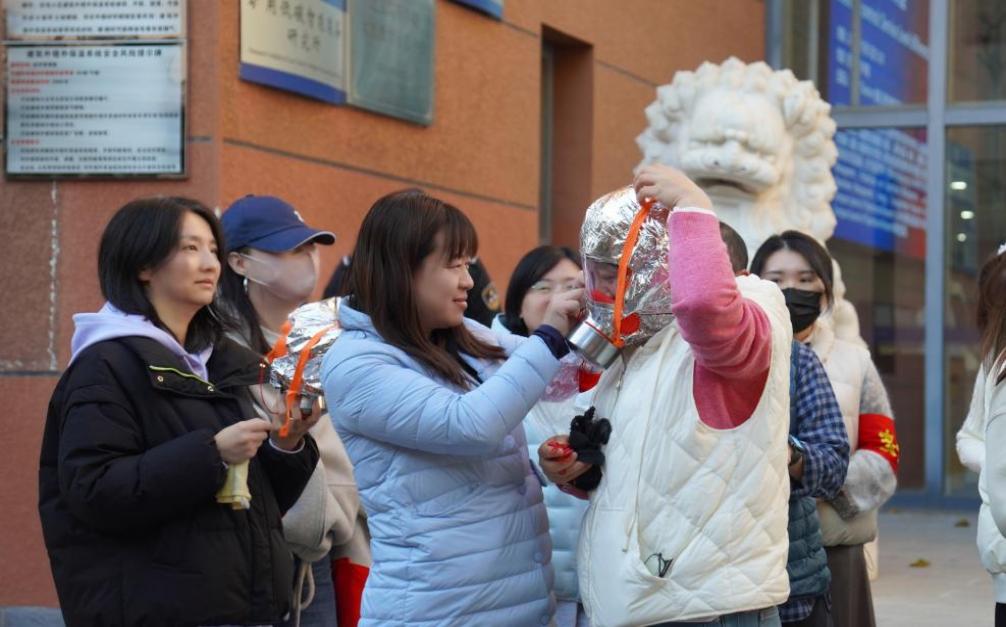 演练结束后,学校保卫处部(处)彭江祥老师现场为参演师生讲解如何正确使用灭火器和消防过滤式自救呼吸器。在专业人员的指导下,部分师生踊跃上前,亲身体验了如何使用灭火器扑灭初起火灾,掌握了“提、拔、握、压”的操作要领;体验了如何使用消防过滤式自救呼吸器在火灾中保护呼吸系统、抵御有毒烟雾。